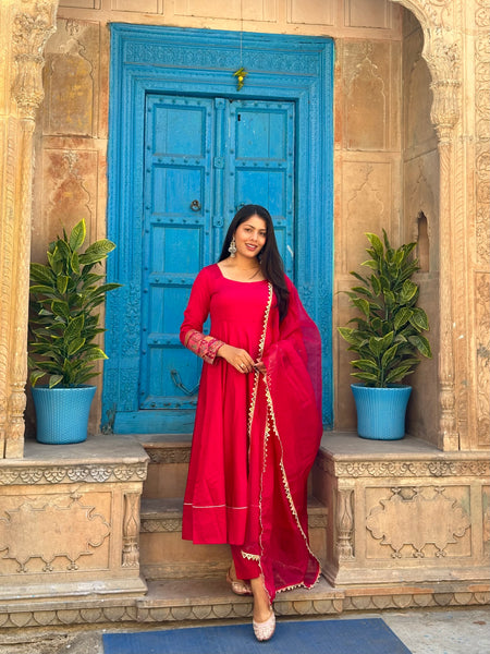 Shagun Laal Lux Anarkali Suit Set