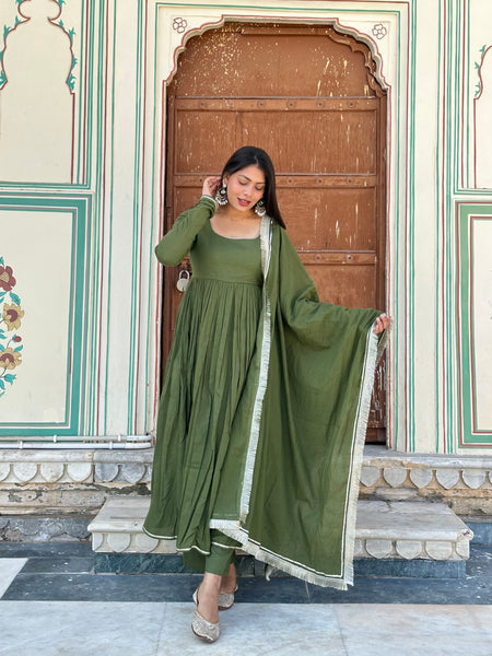 Pure Mul Cotton Mehndi Festive Flare Suit Set