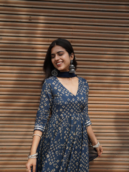 Blue Bhandej Anarkali Suit Set